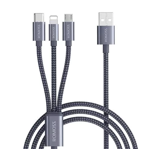 Lightning & Micro-USB y Type-C 3-in-1 Cable Longitud: 1.5m Peso: 43.8g Material: cable trenzado de nylon Color: gris espacial Dispositivo de soporte: iOS 7/8/9/10 teléfono inteligente y tableta con puerto micro-USB teléfono inteligente y tableta con puerto USB-C Material de la caja: caja impresa colgante Dimensión de la caja: 100x100x20mm Peso: 57.5 g (paquete completo) Cantidad de cartón principal: 88pcs / ctn Dimensión principal del cartón: L420xW250xH230mm N.W: 5.06kg
